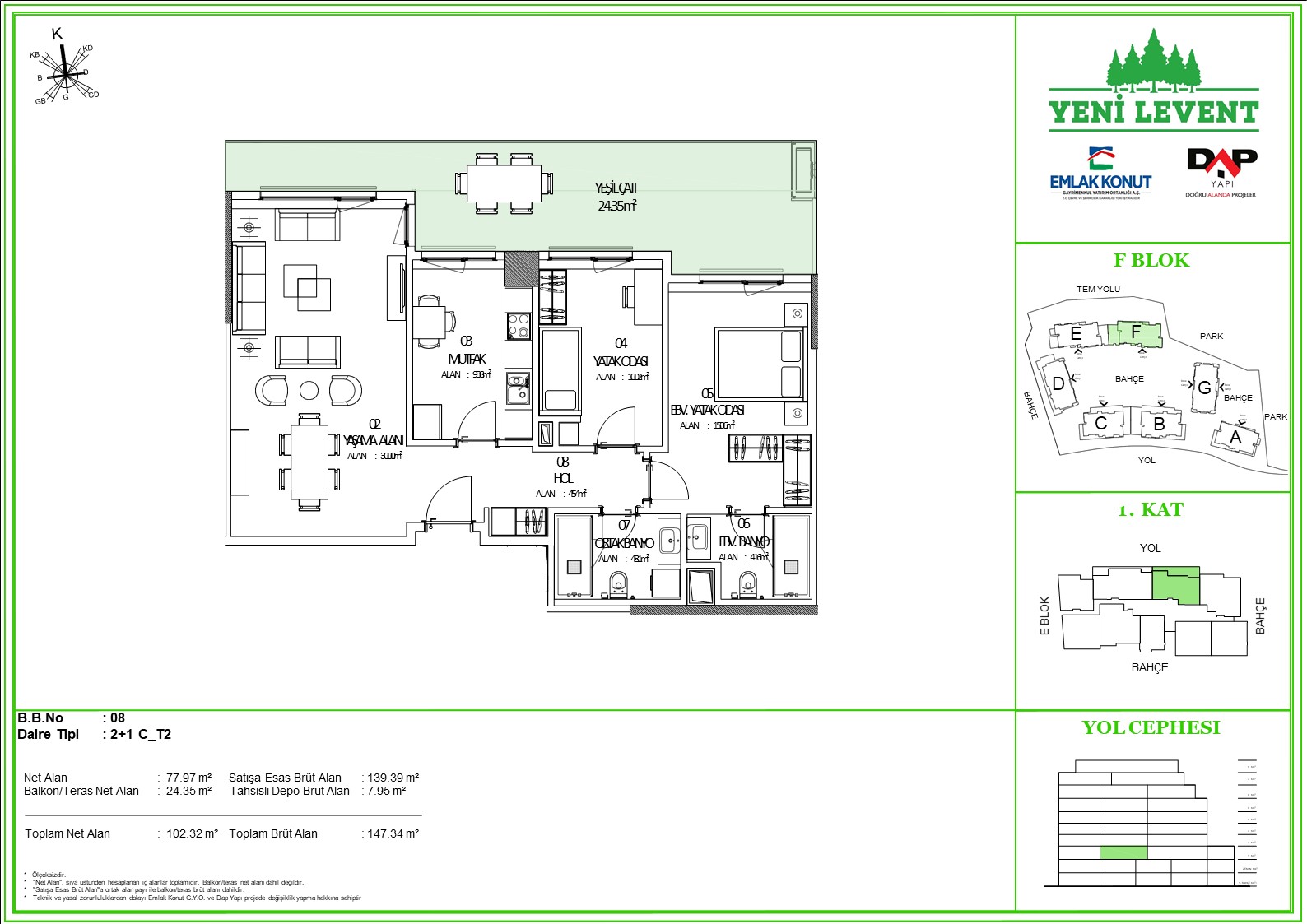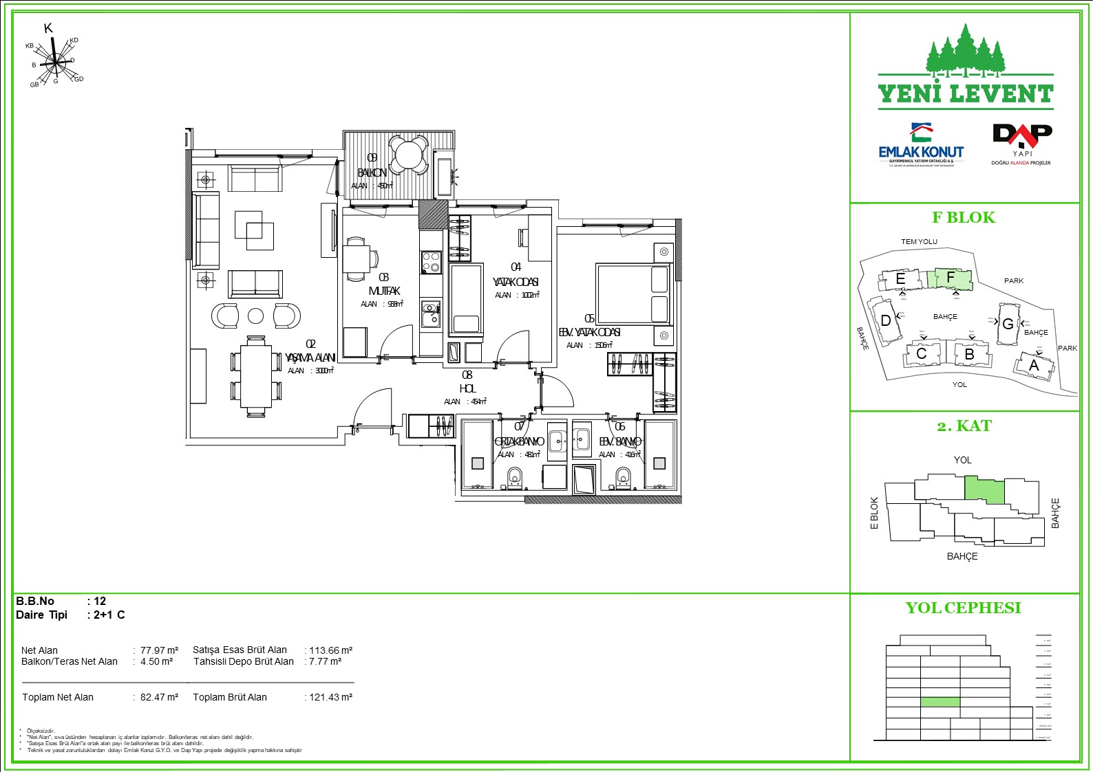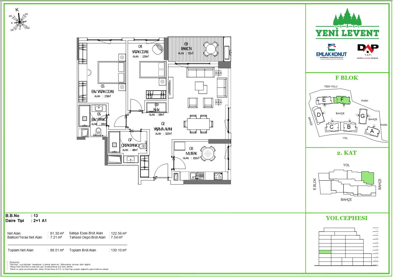 برای آپارتمان های ۲+۱ دوبلکس، ۳+۱ و ۴+۱: پارکینگ برای ۲ ماشین
