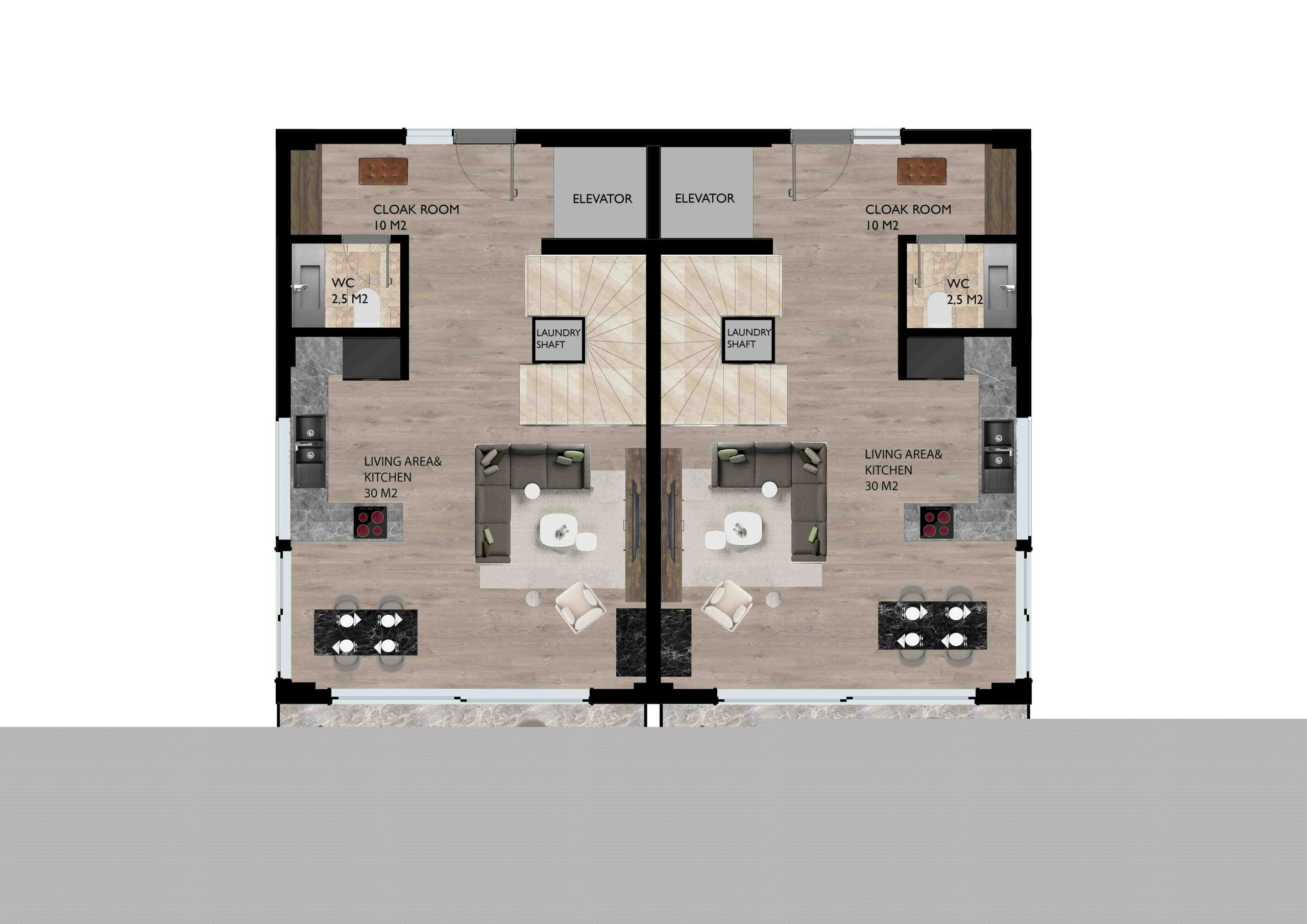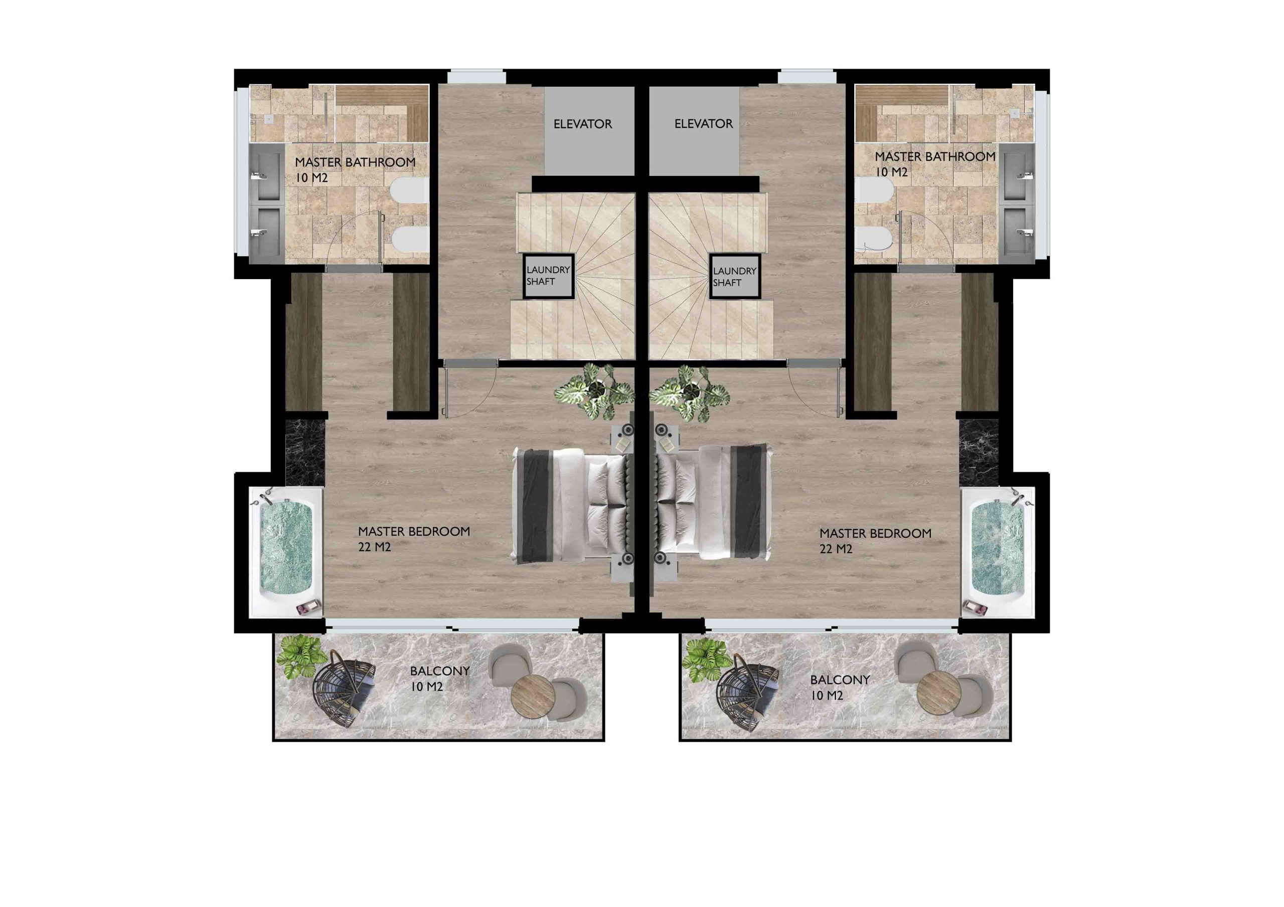 ویلاهای دوقلو سه خوابه : مساحت کلی 260 متر و 202 متر زیر بنا