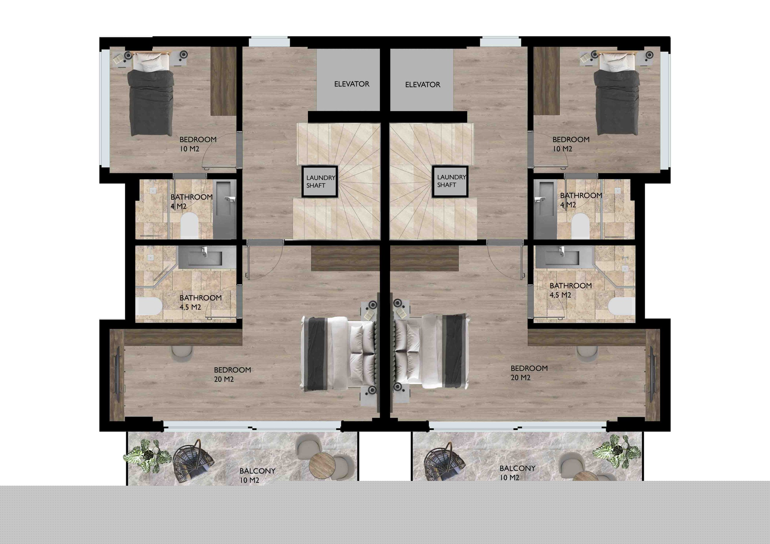 4 Zwillings Villas 3+1 260 m² + 202 m² Garten