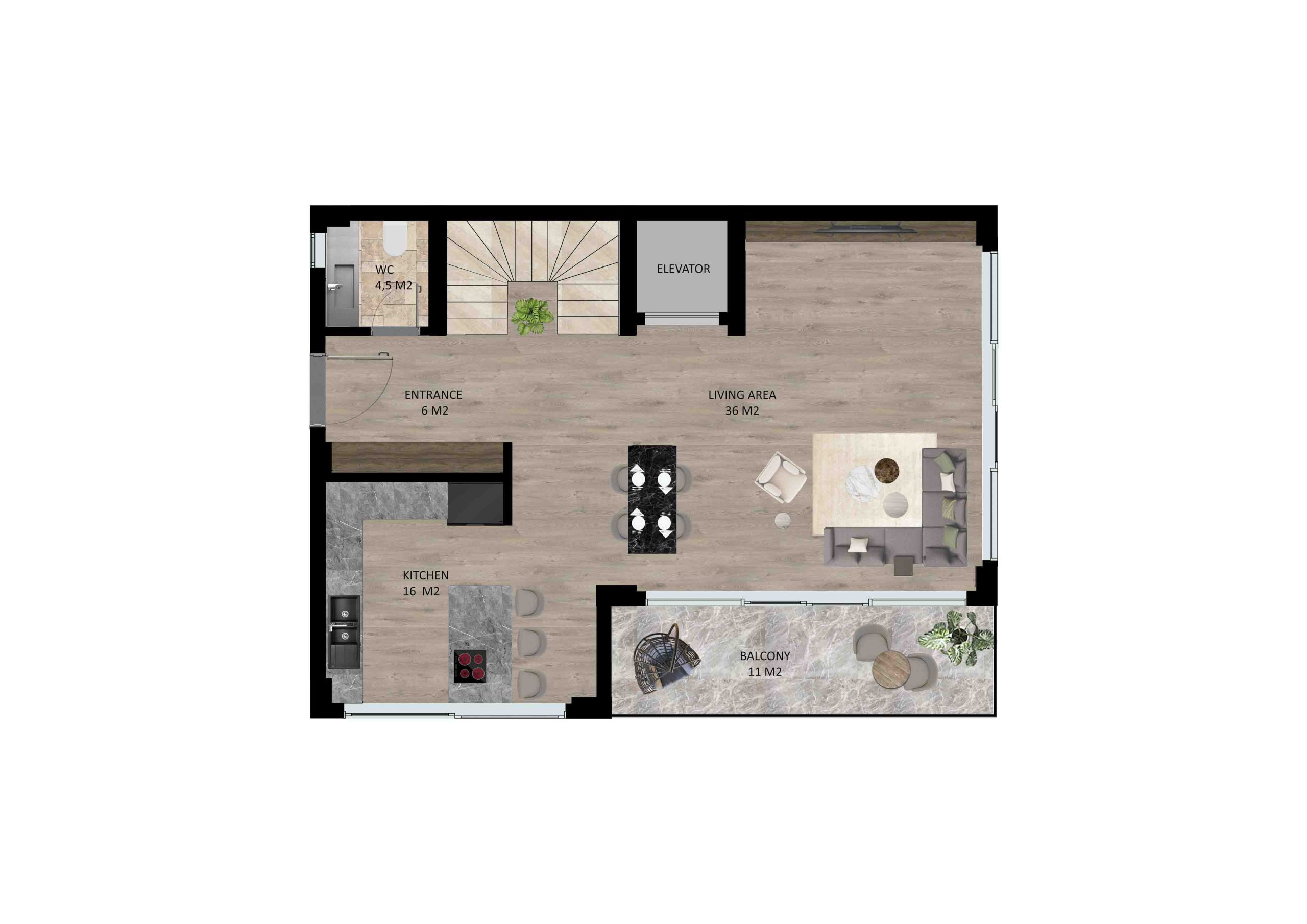 پروژه در زمی نی به مساحت 4000 متر مربع در منطقه بکتاش آلانیا واقع شده است