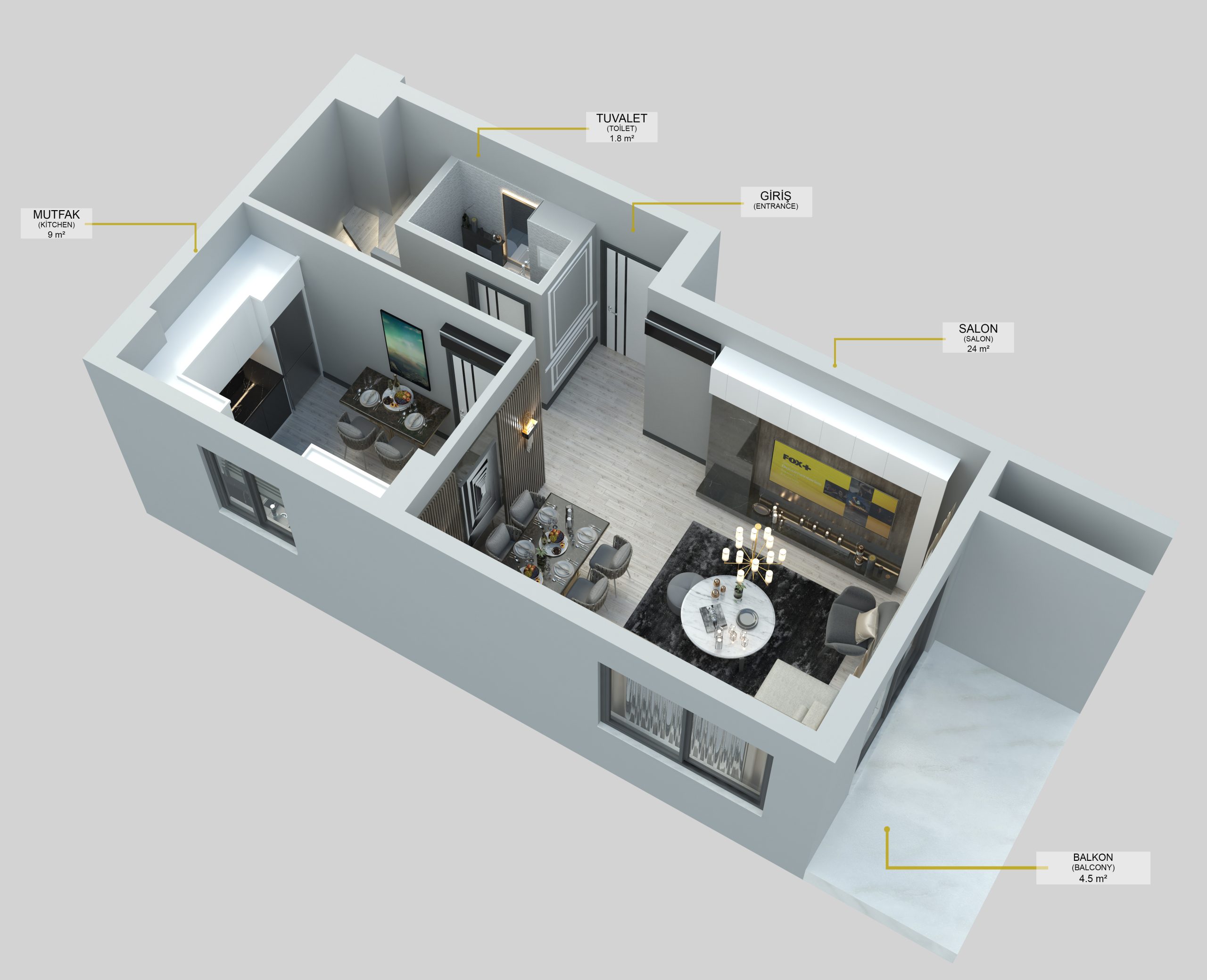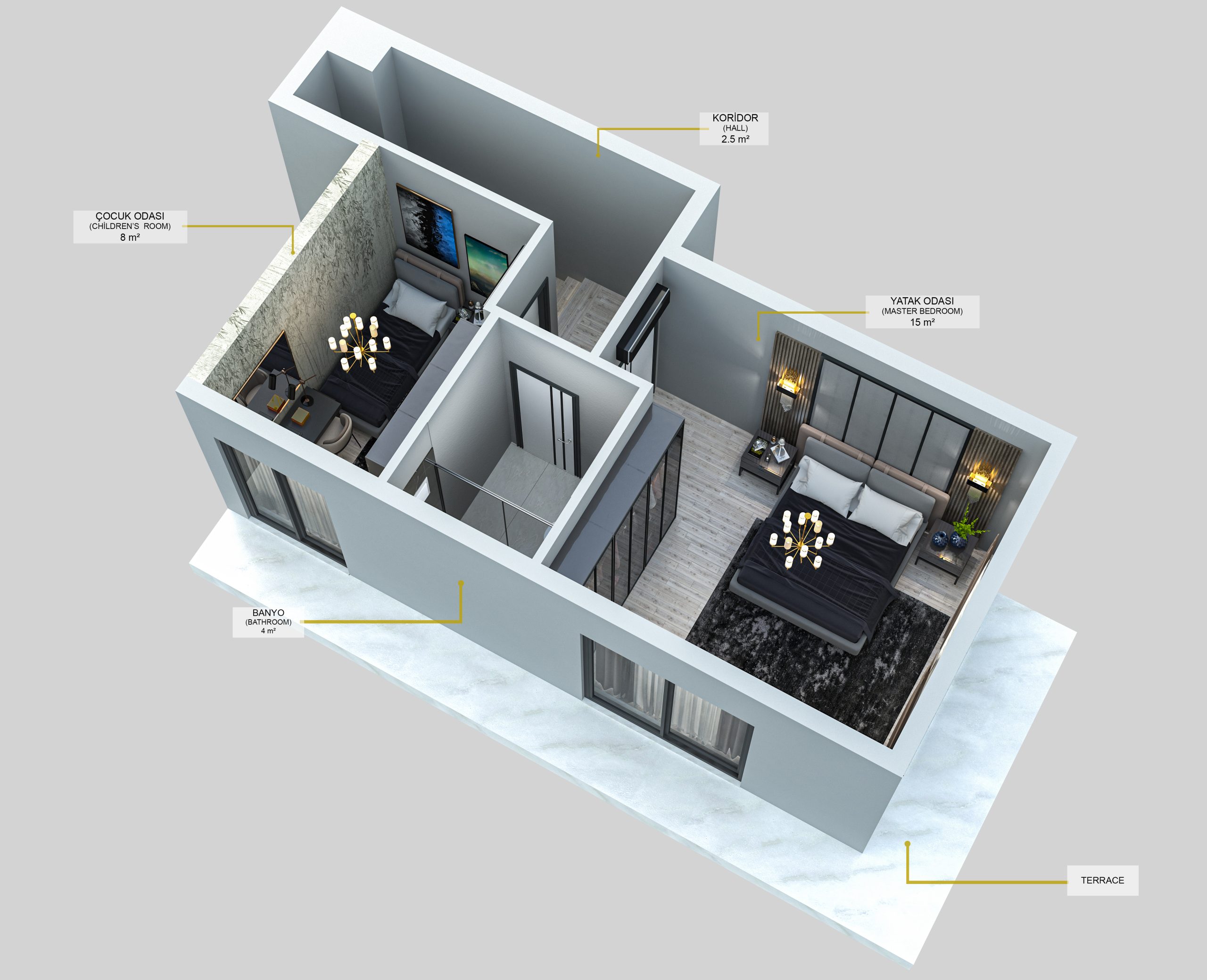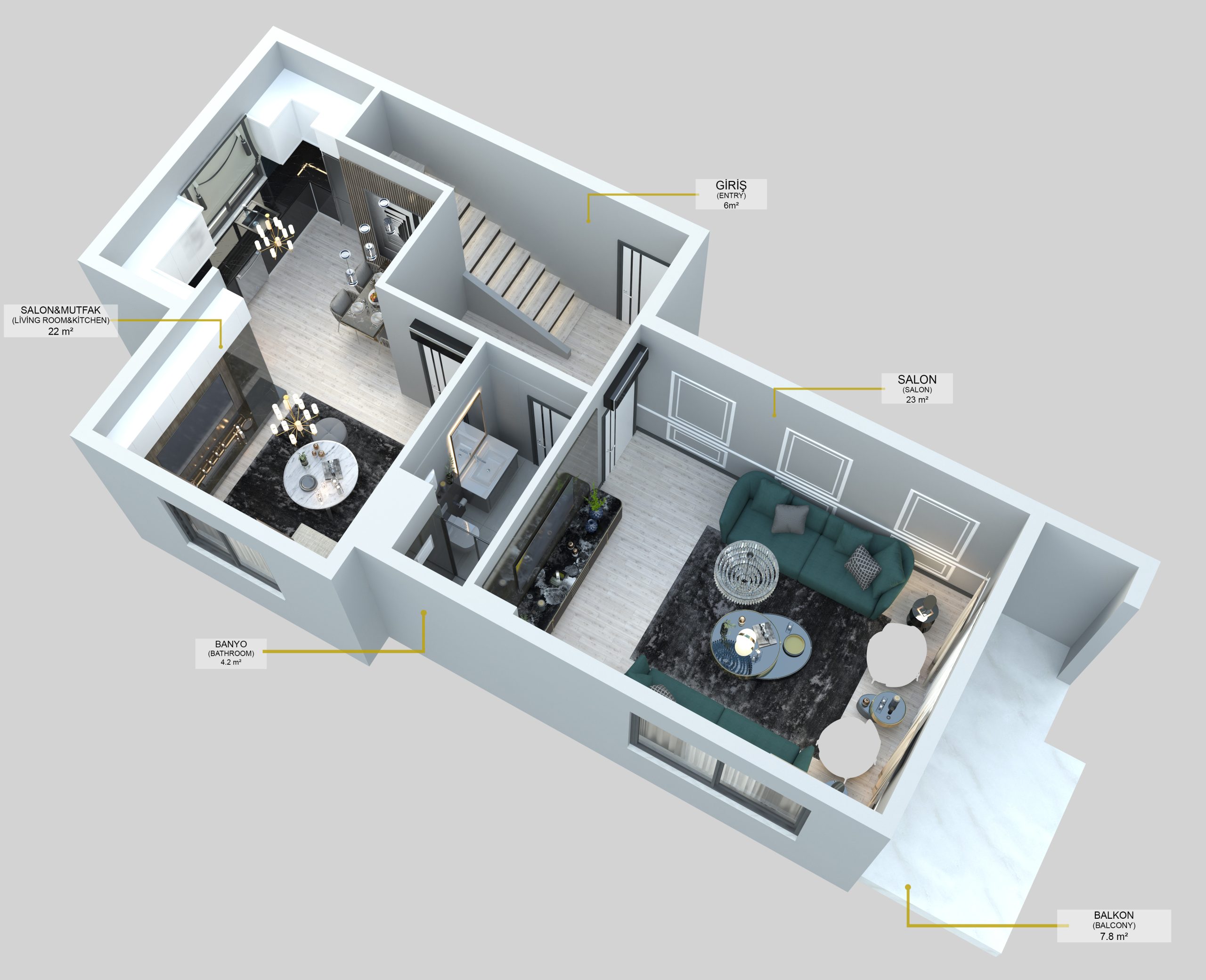 – آپارتمان دوبلکس 2+1 و 3+1 100 – 160 متر مربع