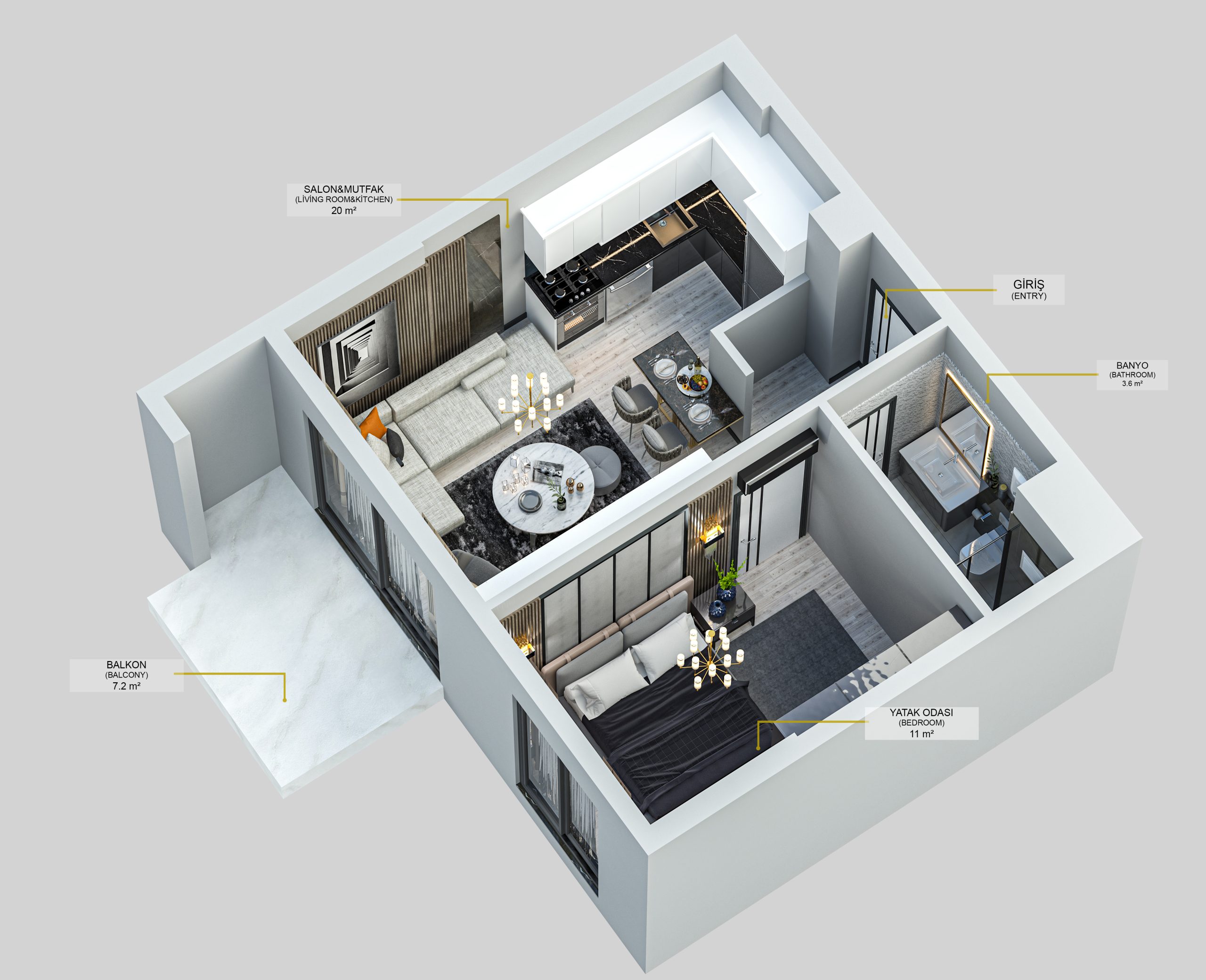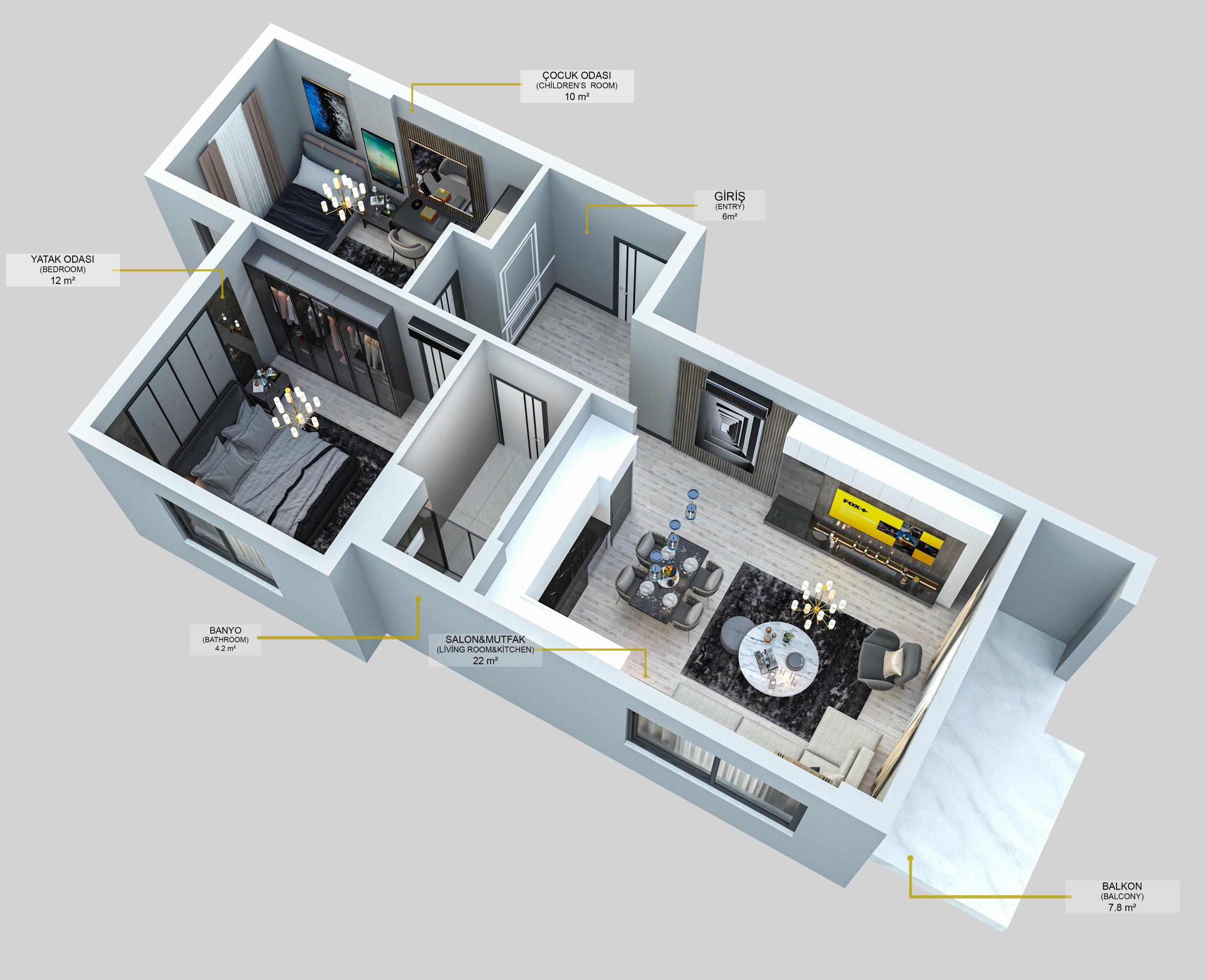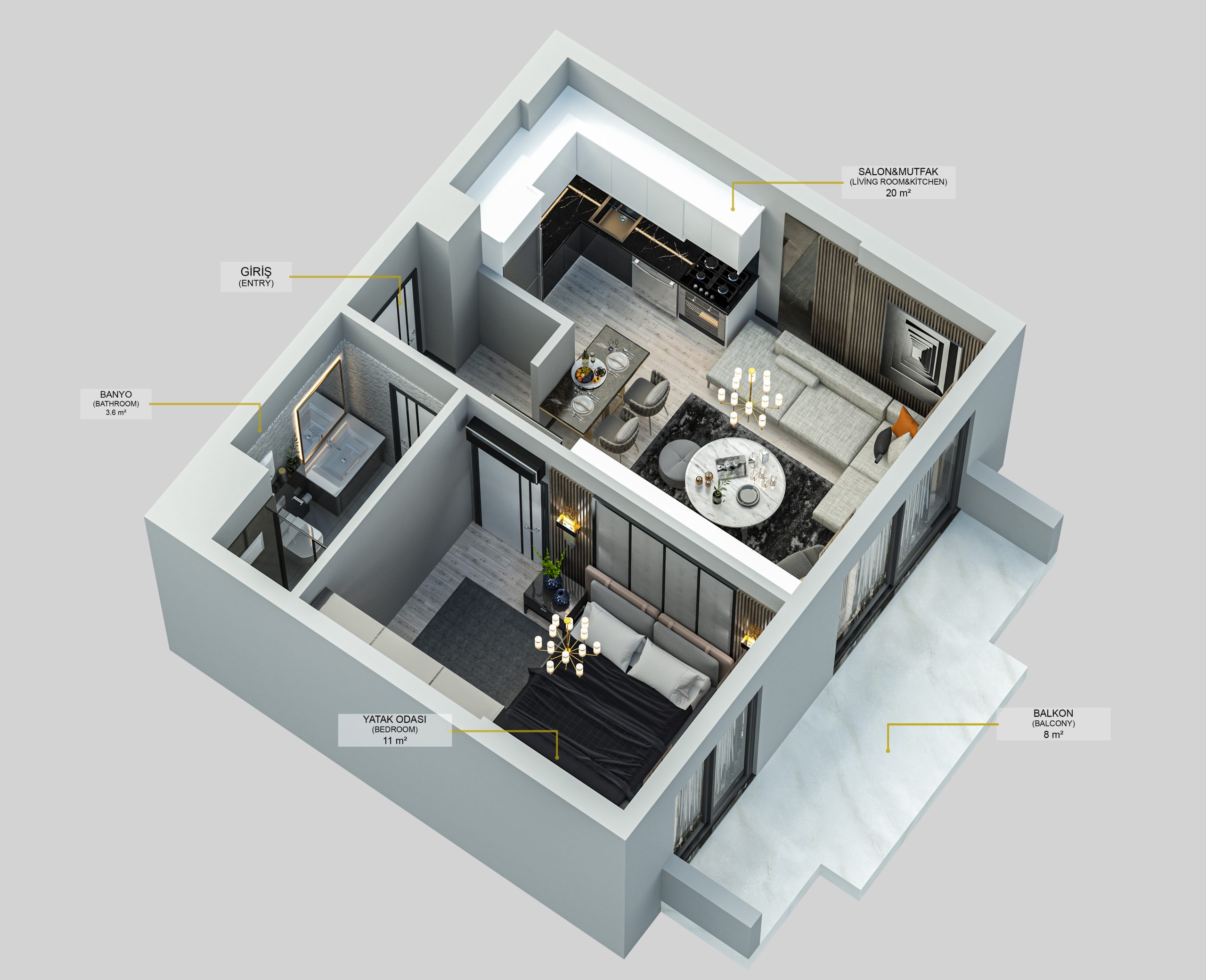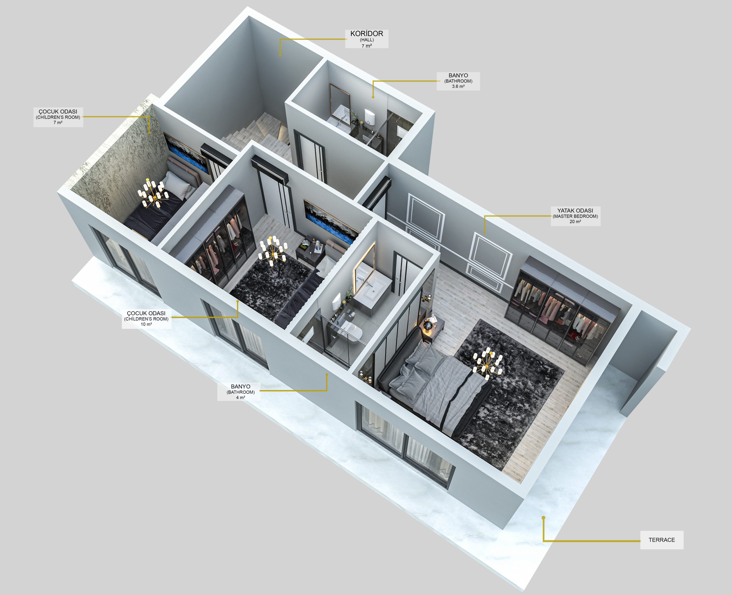 – آپارتمان دوبلکس 2+1 و 3+1 100 – 160 متر مربع